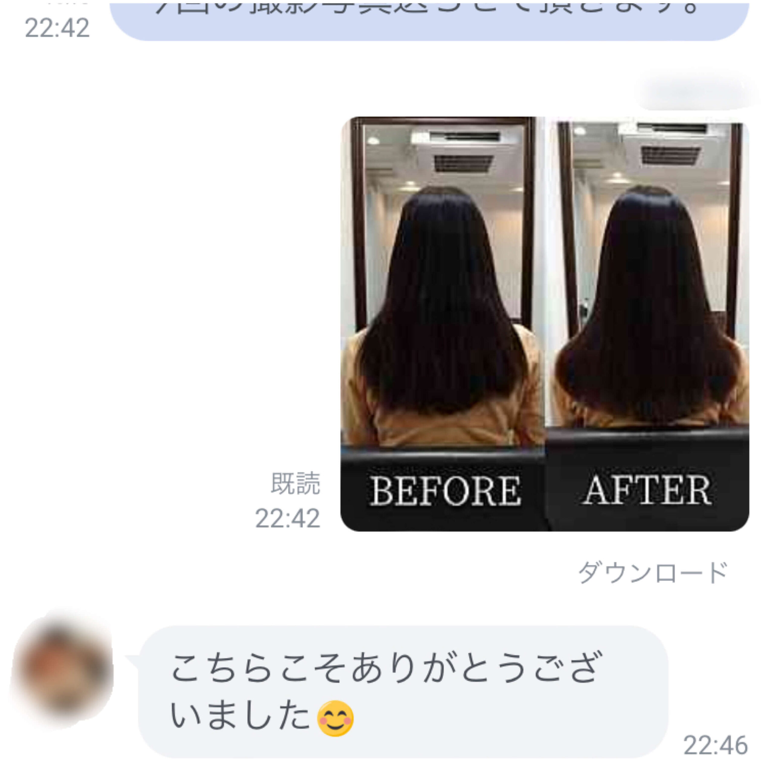 撮影サービスをご用意(希望の方のみ)LINE予約でお帰りの際に記念としてプレゼント。髪がキレイになる経過がわかるのでオススメです。