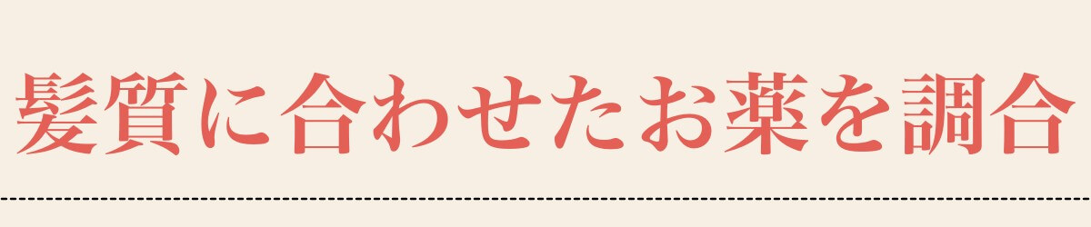おクスリをオーダーメイドで調合。プロが1g単位で髪質にあわせクスリを作ることで負担の少ないキレイな髪になります