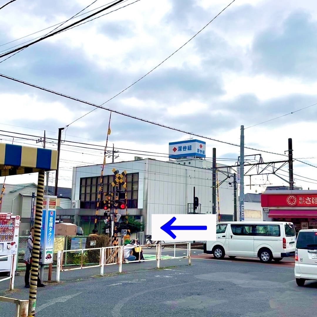 ロータリーを左に進み、踏切に向かいます。